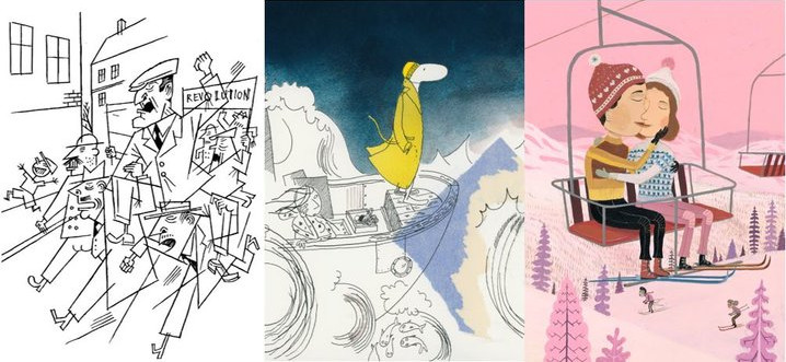 The exhibition "Georg Grosz meets Mulysses on Slush Mountain. Modern illustration from Norway” includes work by eleven Norwegian illustrators, selected from a variety of new Norwegian picture books for both children and adults, all of which can be found in books that are translated and available in German.