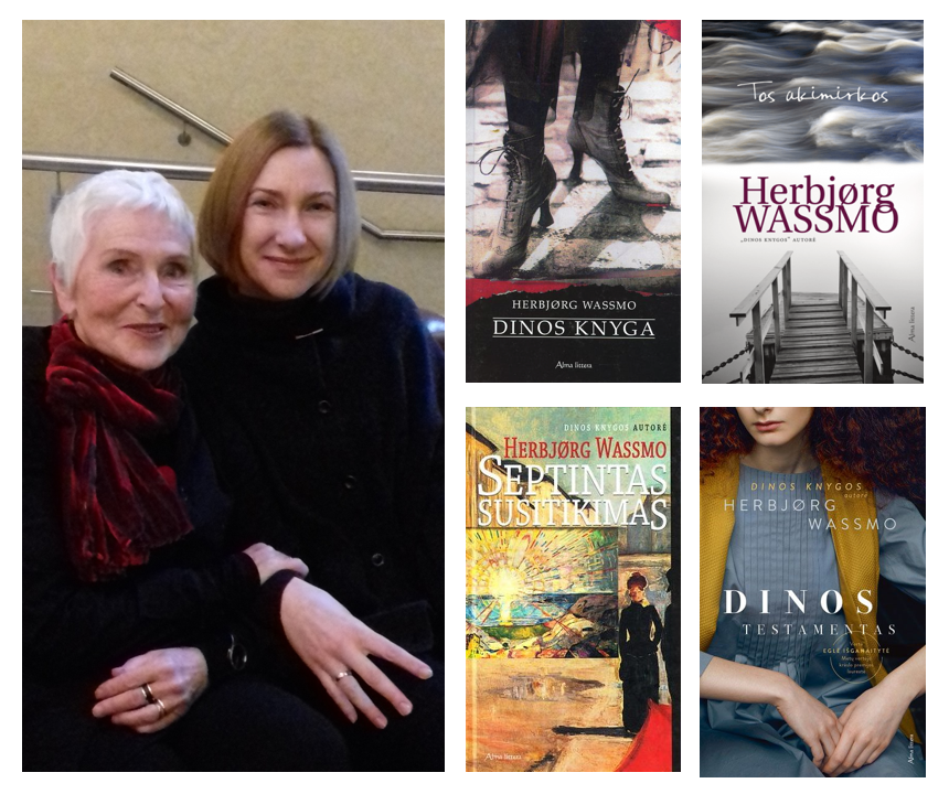 Herbjørg Wassmo and Egle in Vilnius in 2017, and a selection of Egle's translations of Wassmo's novels.