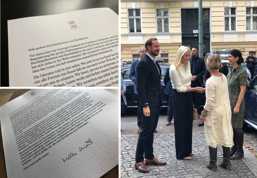 Crown Princess Mette-Marit is an ambassador for Norwegian literature abroad and participated in last year’s Frankfurter Buchmesse. Now the Crown Princess has written a Christmas letter to 2,540 booksellers in Germany.