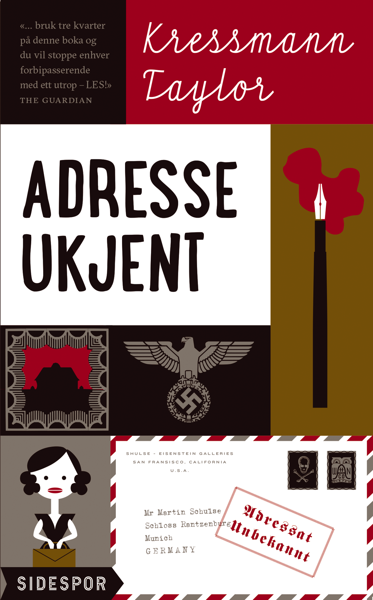 Hvis du bare har 30 minutter å lese, så kan du faktisk lese hele boka Adresse ukjent. På 87 sider gjenforteller denne lille brevromanen korrespondansen mellom en amerikansk jødisk gallerist og hans tyske samarbeidspartner på begynnelsen av 1930-tallet. Brevvekslingen mellom USA og Tyskland viser hvordan et nærmest broderlig vennskap kan ødelegges av ideologiske overbevisninger. Hvert ord binder deg til historien og slipper deg ikke løs, før du har lest alt. Sjelden har en så liten bok hatt så stor kraft i seg, i det den fanger selve essensen i både den individuelle og kollektive tragedien som skulle bli nazi-Tyskland.