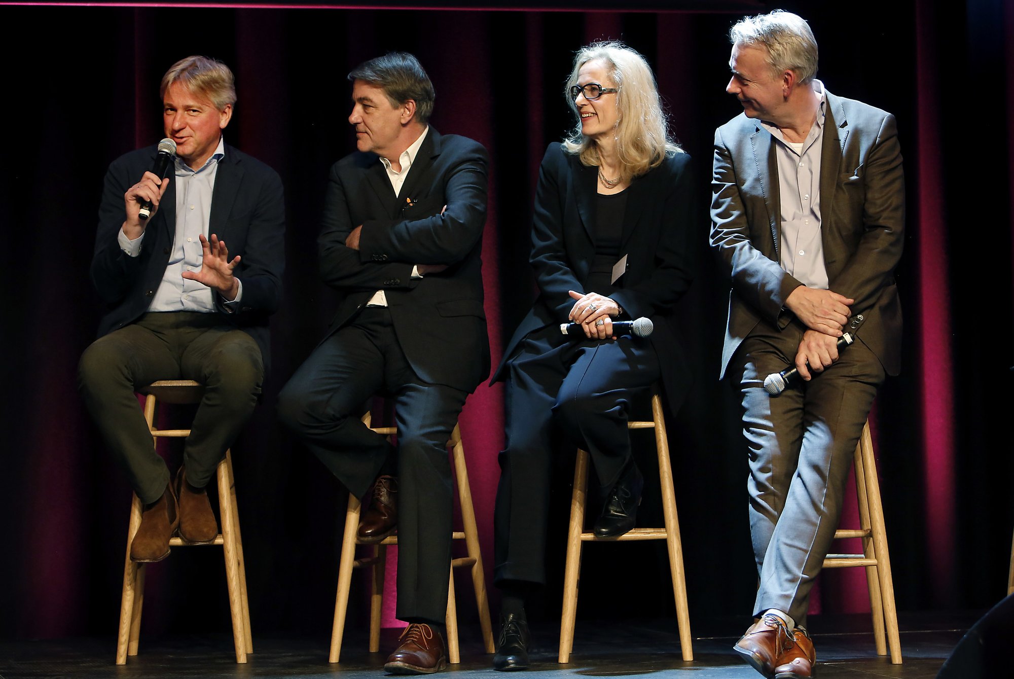 Flere prominente gjester fra utlandet bidro til konferansen. Fra venstre: Juergen Boos, direktør for Bokmessen i Frankfurt, Matthias Wagner K, direktør for Museum Angewandte Kunst i Frankfurt, Barbara Weidle, forlagssjef for Weidle Verlag og Bas Pauw, prosjektleder for Nederland & Flandern som gjesteland 2016.