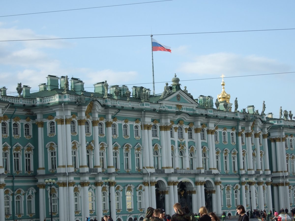 Det er en vakker morgen og det er lenge til flyet går. Taxisjåføren tilbyr seg å kjøre ”den fine veien” ut til flyplassen. Turen går gjennom sentrum, forbi Vinterpalasset. Det ligger der badet i morgensolen, like irrgrønt og vakkert som i nattemørket. En imponerende bygning med ufattelig mange piper. Tenk å varme oppe en slik bygning!